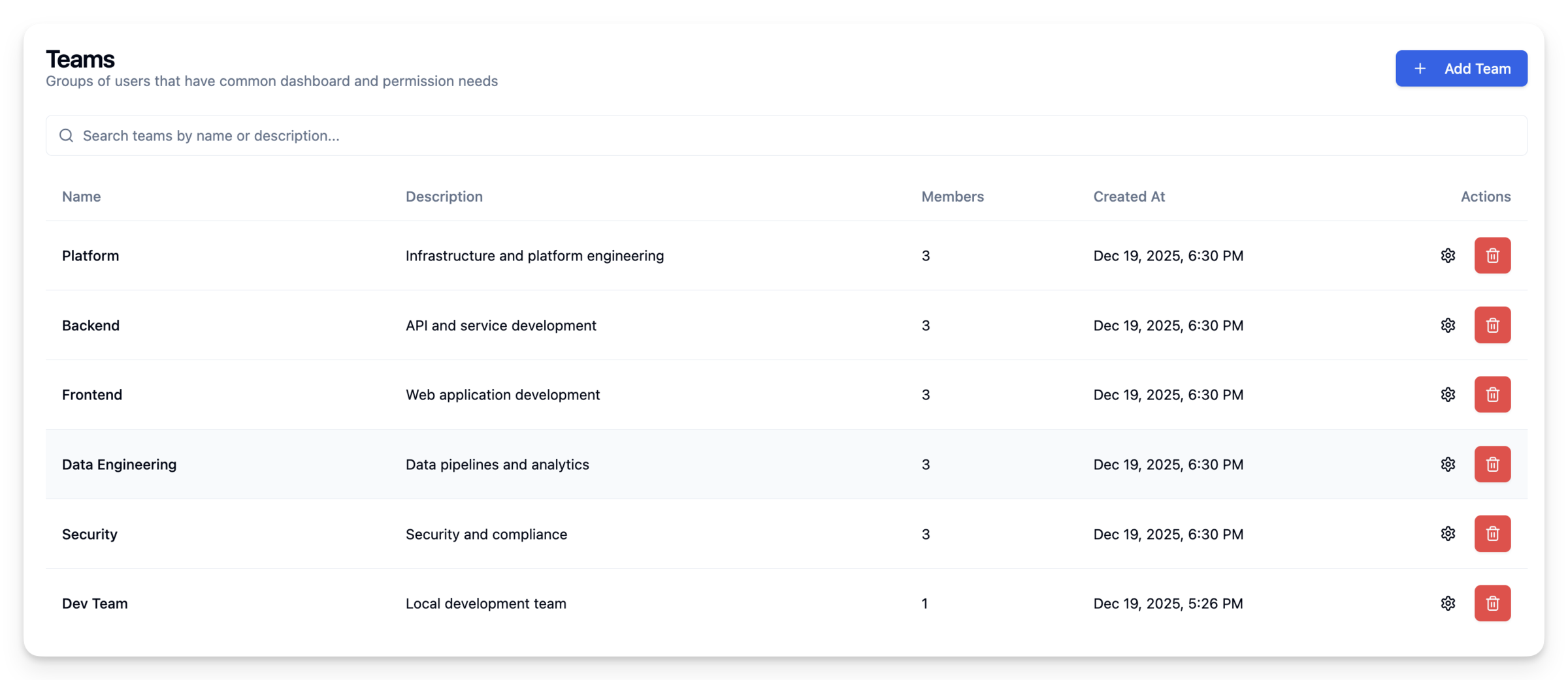 Logchef supports multi-tenancy with role-based access. Teams can have multiple data sources, and users can be members of multiple teams with different roles: